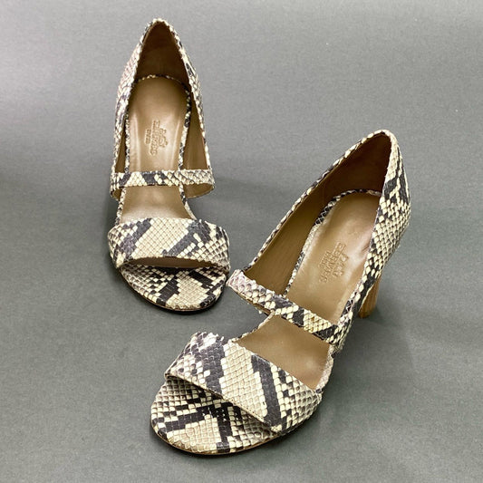 1k9 《美品》 HERMES エルメス パイソンレザー ヒールパンプス 36 グレージュ leather シューズ イタリア製 箱付 チャンキーヒール
