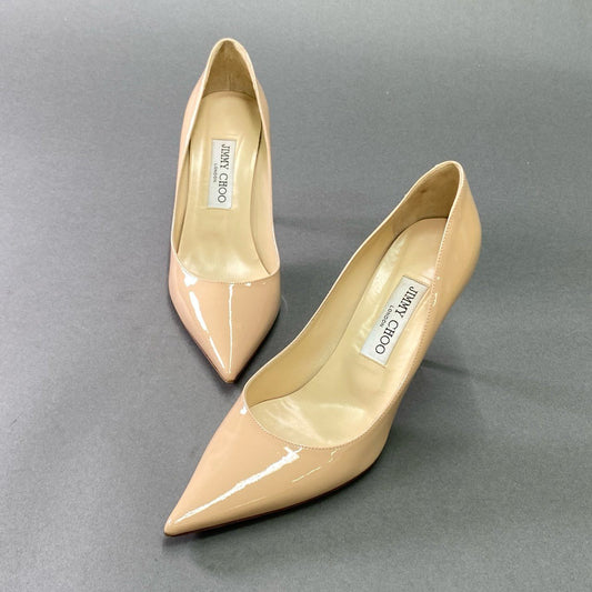 4k9 《美品》 JIMMY CHOO ジミーチュウ AGNES エナメル ヒールパンプス 38 パウダーピンク パテントレザー セレモニー 結婚式 シューズ イタリア製 箱付き