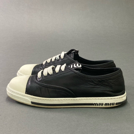 7c11 イタリア製 miu miu ミュウミュウ ナッパレザー ロゴテープ ローカットスニーカー シューズ スクエアトゥ 37 ブラック 本革