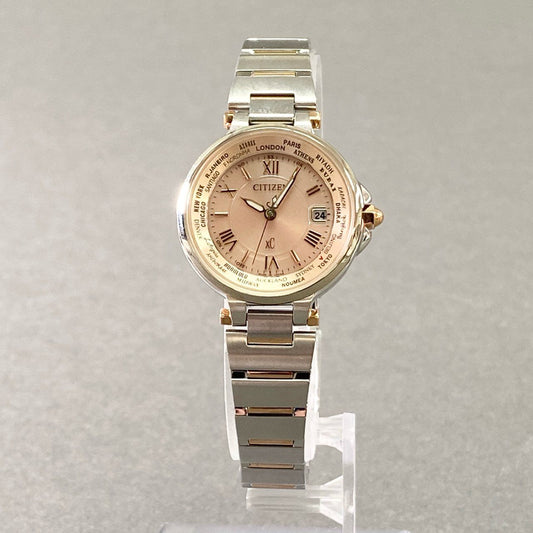 a27 《美品》 CITIZEN XC シチズン 電波ソーラー 腕時計 クロスシー アナログ 3針 H245-T018238 ピンク シルバー