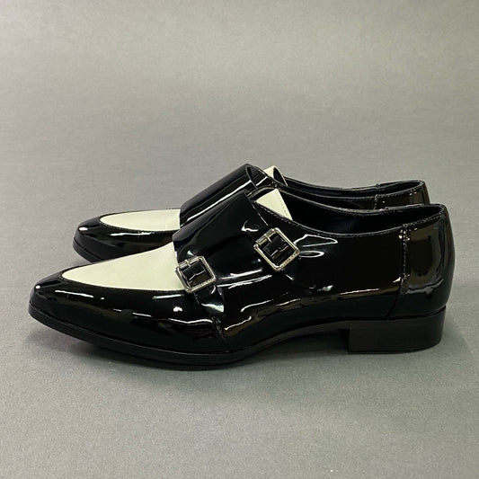 3c18 イタリア製 JIMMY CHOO ジミーチュウ ダブルモンクストラップ シューズ パテントレザー バイカラー 35 ブラック ホワイト