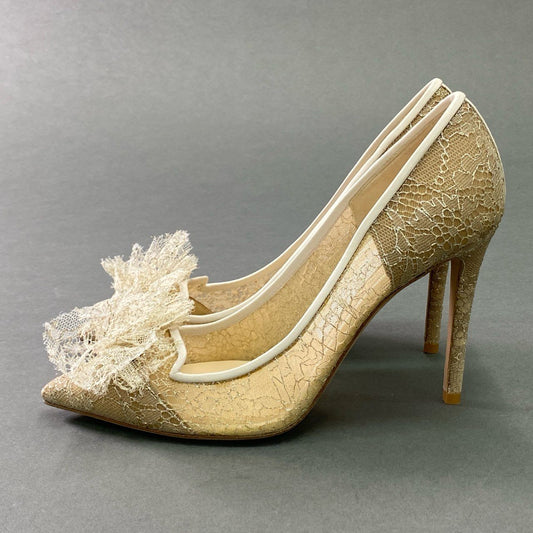 3c18 《美品》 JIMMY CHOO ジミーチュウ レースモチーフ付き ハイヒール パンプス シューズ イタリア製 36 1/2 ベージュ ホワイト