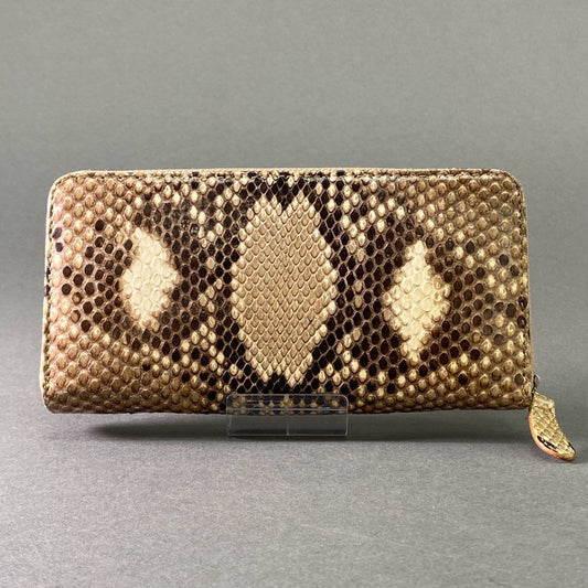 a27 GARRA ガラ ダイヤモンドパイソン 長財布 ラウンドファスナー ヘビ革 ロングウォレット LONG WALLET ベージュ ブラウン レザー ヘビ革
