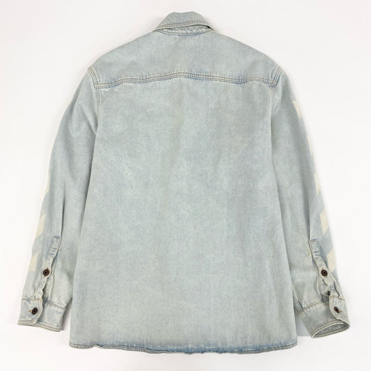 27a17 OFF-WHITE オフホワイト Diag Oversize Denim Shirt ダメージ加工 ロゴ オーバーサイズ デニム シャツ ジャケット OMYD017R20386018 M インディゴ デニム