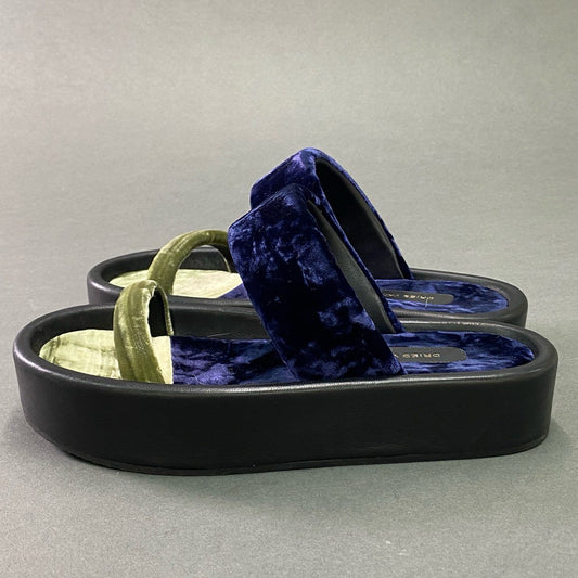 3c18 《美品》 DRIES VAN NOTEN ドリス ヴァン ノッテン 24SS ベルベット スライド サンダル シューズ ベロア バイカラー 35 グリーン ネイビー