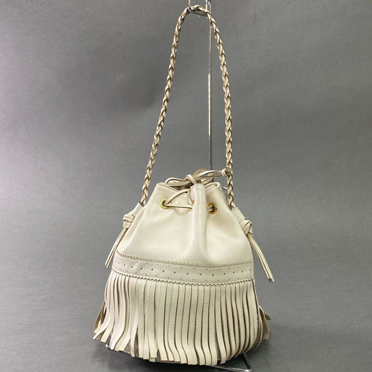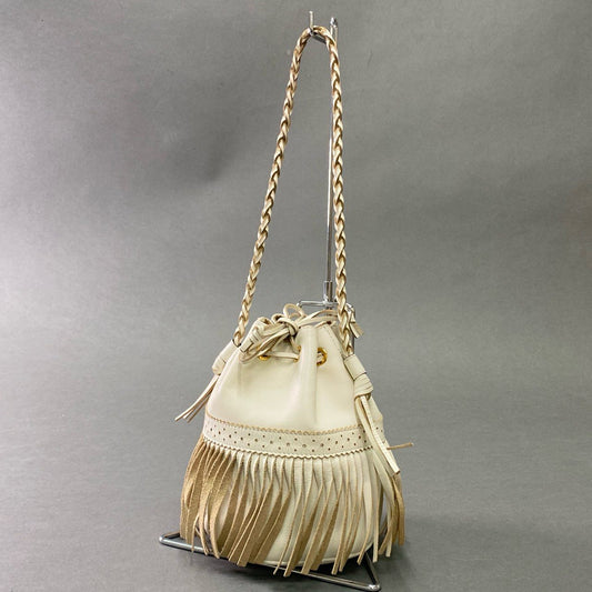 Hb10 J&M DAVIDSON ジェイアンドエムデヴィッドソン CARNIVAL カーニバル ショルダーバッグ 巾着 バケットバッグ フリンジ 保存袋付属 ニューホワイト 本革