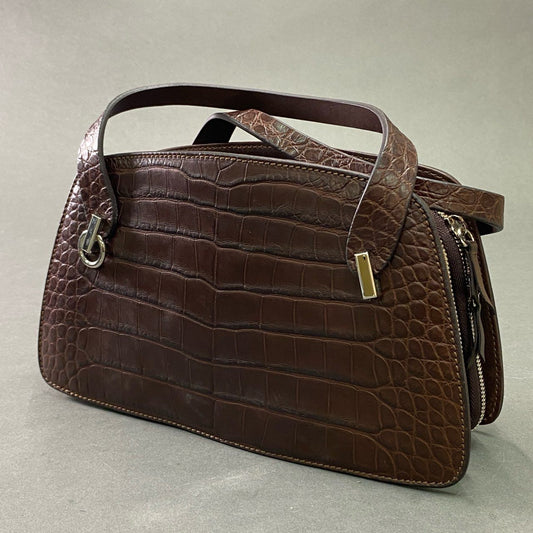 Cb10 MAURO GOVERNA マウロ ゴヴェルナ クロコダイル ショルダーバッグ ハンドバッグ 2way エキゾチックレザー 本革 センター取り 保存袋付属 ブラウン 本革