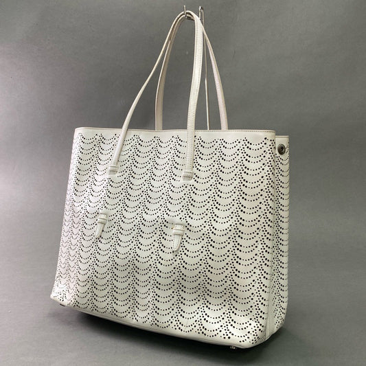 Cb10 ALAIA アライア トートバッグ 肩掛け パンチングレザー leather カーフスキン ポーチ付◎ 保存袋付属 ホワイト 本革