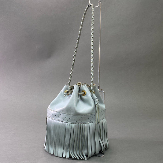 Hb10 J&M DAVIDSON ジェイアンドエムデヴィッドソン CARNIVAL カーニバル セミショルダーバッグ 巾着 バケットバッグ フリンジ 保存袋付属 くすみブルー レザー