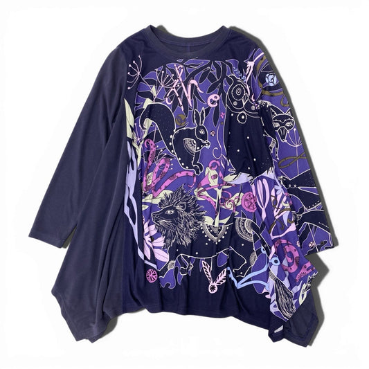 33c10 【美品】 TOKUKO 1er VOL ロングスリーブ チュニックワンピース アニマル柄 Aライン ストレッチ レディース 女性服 サイズ9 パープルu02t