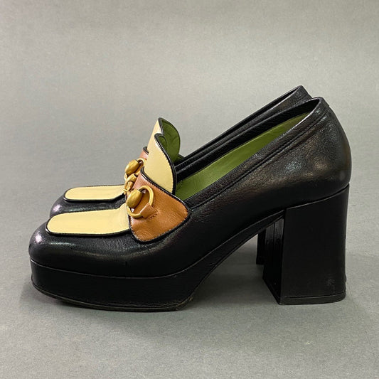 1a9 GUCCI グッチ ホースビット ヒールローファー 36 ブラック レザー イタリア製 ビッグチャンキー シューズ