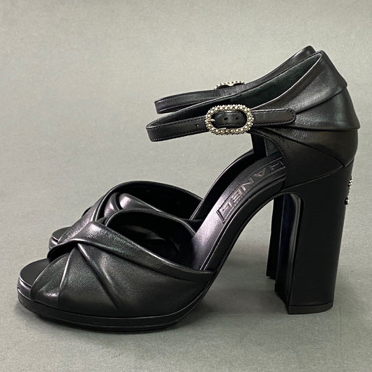 1a9 CHANEL シャネル 23P パールココマーク アンクルストラップ ヒールサンダル G39968 36 1/2 ブラック レザー イタリア製 パンプス シューズ 箱付き