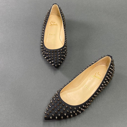 6a10 Christian Louboutin クリスチャンルブタン スタッズ フラットパンプス 36 ブラック イタリア製 シューズ