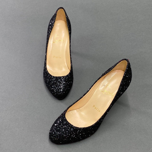 6a10 Christian Louboutin クリスチャンルブタン グリッター ラメパンプス 36 ブラック イタリア製 セレモニー 結婚式 シューズ
