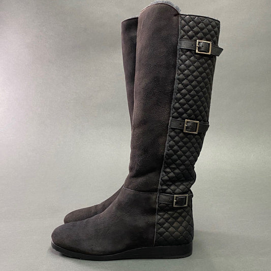 11a10 JIMMY CHOO ジミーチュウ BIKER LEATHER UNLINED ムートン ロングブーツ 37 1/2 ブラック レザー イタリア製 スエード シューズ 冬