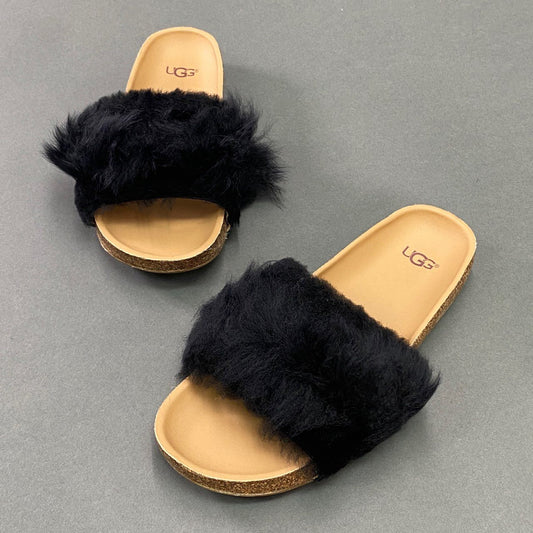 6a10 《未使用品》 定価¥17,600 UGG アグ W DIANE WISP ファーサンダル 22cm ブラック シューズ