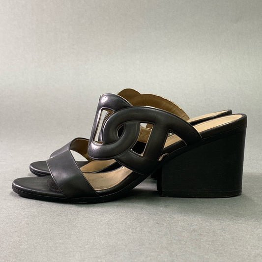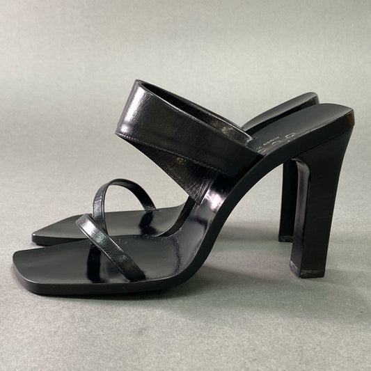 5k5 HERMES エルメス ビキニ カーフレザー ヒールサンダル 36 ブラック leather シューズ イタリア製 シェーヌダンクル