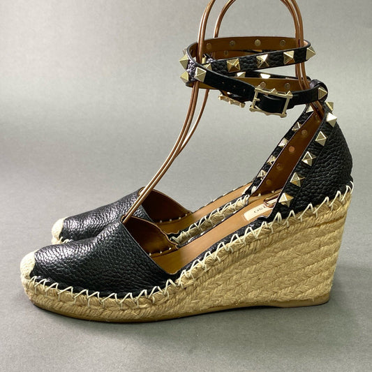 5k5 VALENTINO GARAVANI ヴァレンティノ ガラヴァーニ ロックスタッズ ウェッジソールパンプス 38 ブラック レザー シューズ サンダル イタリア製