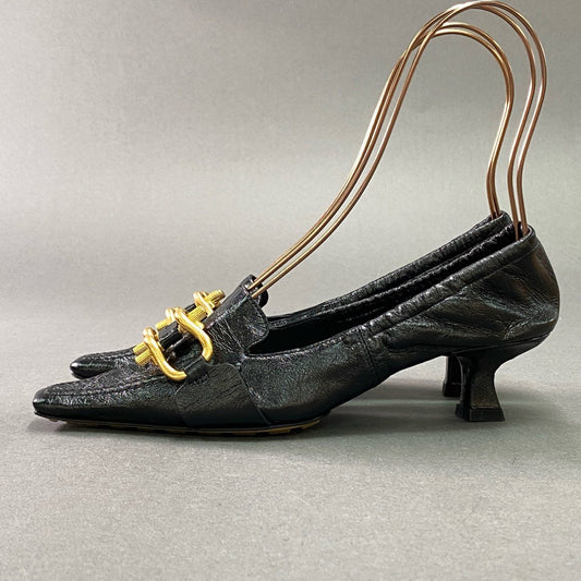 1k6 【極美品】BOTTEGA VENETA ボッテガヴェネタ ゴールドバックル ローヒール レザーパンプス サイズ35 ブラック レザー レディース 女性用 吐き口ゴム仕様