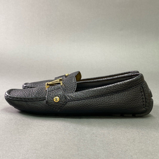 2k5 LOUIS VUITTON ルイヴィトン LV ドライビングシューズ 36 1/2 ブラック レザー シボ革 イタリア製