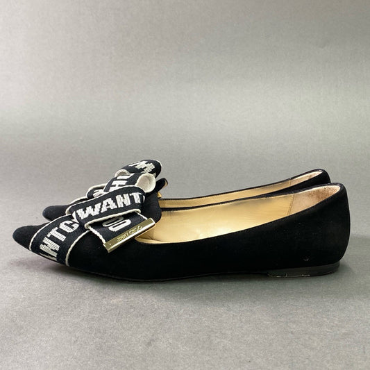 6k5 JIMMY CHOO ジミーチュウ ロゴテープリボン フラットシューズ フラットパンプス サイズ37 ブラック スウェード レディース 女性用 靴