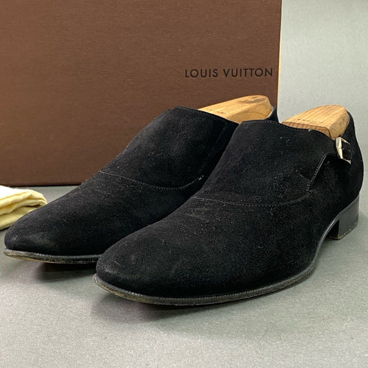 13k6 【イタリア製】LOUIS VUITTON ルイヴィトン モンクストラップシューズ ドレスシューズ サイズ7 ブラック スウェード メンズ 男性用 革靴 ビジネスシューズ