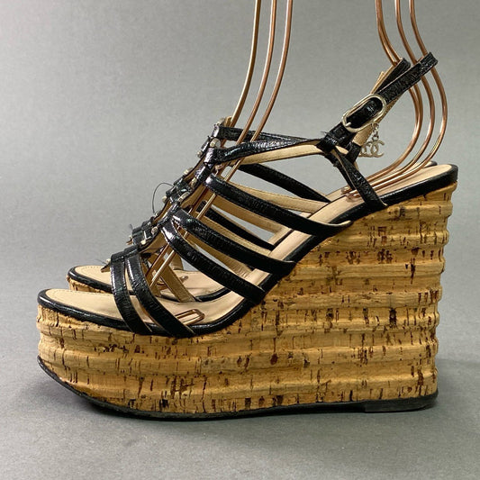 5k5 CHANEL シャネル ココマーク ウェッジソール サンダル 36 1/2 ブラック コルク シューズ イタリア製
