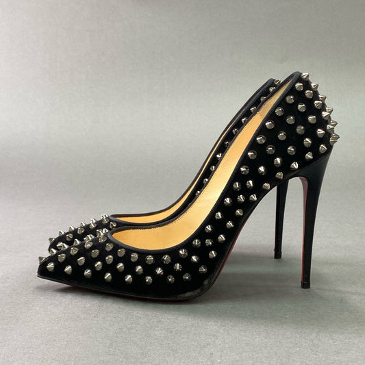 8k6 Christian Louboutin クリスチャンルブタン FOLLIS SPINKES スタッズパンプス 3161133 サイズ37.5 ブラック ベルベット レディース 女性用 シューズ 靴