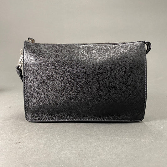 k4《 美品 》PRADA プラダ レザークラッチバッグ 三角プレート 本革 ブラック レザー セカンドバッグ ポーチ 中ポケット×2 カードポケット×6