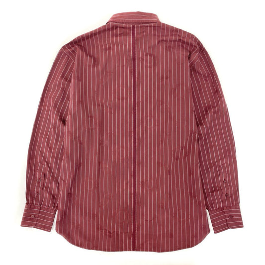 35j22 GIANNI VERSACE ジャンニヴェルサーチ 長袖シャツ ストライプ 透かし総柄模様 サイズ50 ボルドー コットン メンズ イタリア製u02t