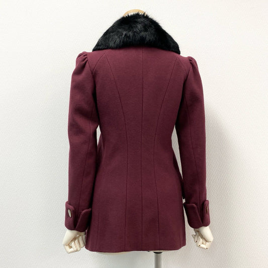 74i8 Vivienne Westwood RED LABEL ヴィヴィアンウエストウッド レッドレーベル オリゾンティ期 オーブボタン ラビットファー襟 ショートコート ジャケット 日本製 2 ボルドー ウール ナイロン レディースk02i