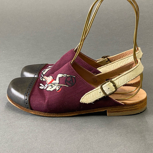 9g9 Under Cover アンダーカバー 刺繍デザイン レザーキャップ スリングバック サンダル 23cm相当 ボルドー シューズ
