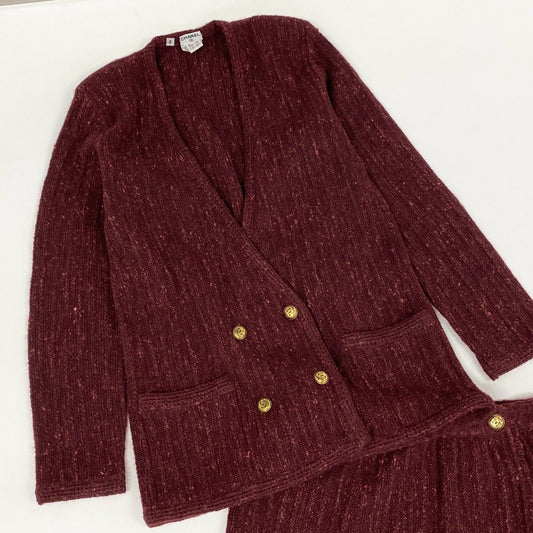 8h4 CHANEL シャネル VINTAGE 金ボタン セットアップ カーディガン 羽織 スカート モヘア Sサイズ ボルドー レディース