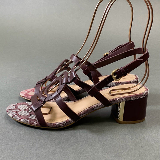 1h1 COACH コーチ シグネチャー ロゴ ヒールサンダル シューズ ストラップ ロゴ刻印 7 ボルドー レザー キャンバス レディースk02i