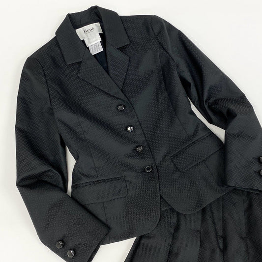78d4 《美品》 Rene ルネ セットアップスーツ テーラードジャケット フレアスカート 日本製 フォーマル◎ 38/36 ブラック