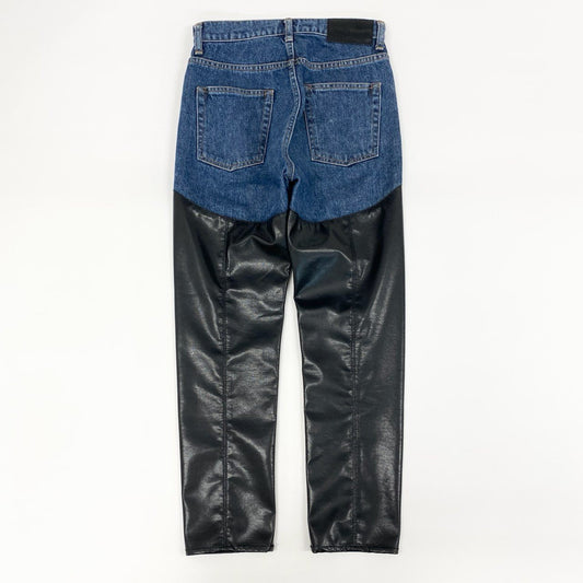 66g8 【美品】 JOHN LAWRENCE SULLIVAN ジョンローレンスサリバン 切替デニムパンツ ジーンズ レザーバイカラーパンツ ヴィーガンレザー レディース 女性用 JLSW-38 XS ブルー×ブラック