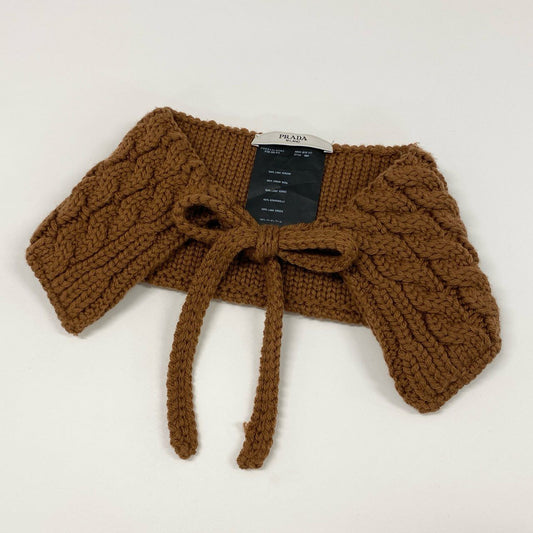62g18 PRADA プラダ ケーブル編み ニット付け襟 アタッチドカラー フロントリボン ブラウン系 レディース