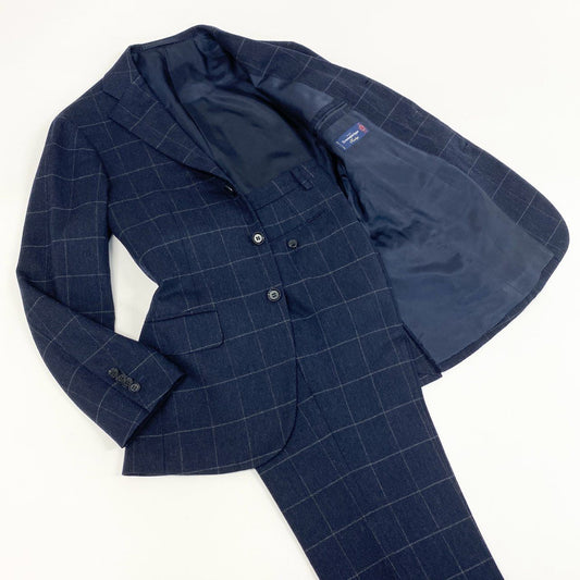 87f24 《美品》 RING JACKET リングヂャケット × guji グジ カシミヤブレンド セットアップ スーツ 42 ネイビー Zegna ゼニア生地 フォーマル ビジネス