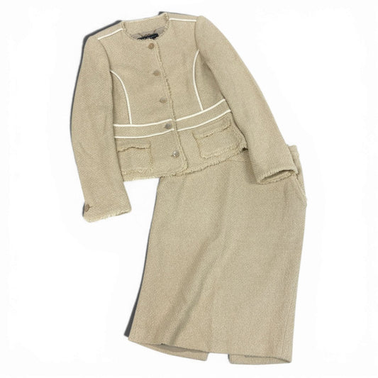 Ec10 Salvatore Ferragamo サルヴァトーレフェラガモ スカートセットアップ ツイードジャケット セレモニースーツ フォーマル レディース イタリア製 42 ライトベージュk02i