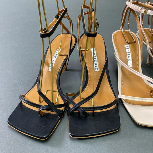 5c18 《2点セット》 PIPPICHIC ピッピシック スクエアトゥ アンクルストラップ サンダル シューズ まとめ まとめて 38 ブラック ピンク レザー