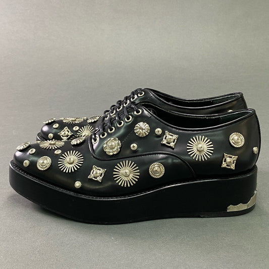 3c18 TOGA PULLA トーガ プルラ スタッズ レースアップシューズ メタル装飾 オックスフォード 36 ブラック レザー