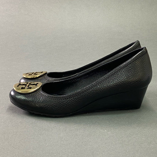 5c18 TORY BURCH トリーバーチ ウェッジソール ロゴ金具 パンプス シューズ 7M ブラック レザー