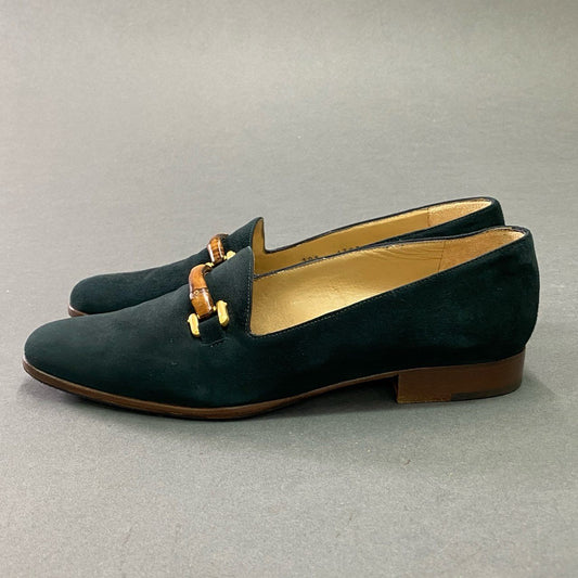 4c25 GUCCI グッチ バンブービット ローファー パンプス シューズ スエード イタリア製 6 1/2 グリーン スウェードレザー