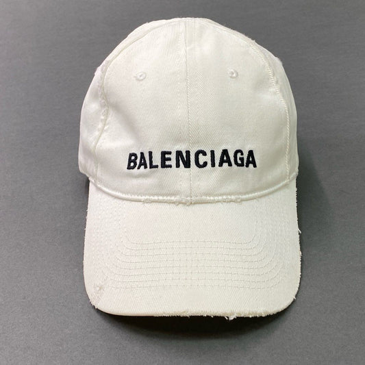 5d5 BALENCIAGA バレンシアガ ベースボールキャップ ブランドロゴキャップ ダメージ加工 コットンキャップ ユニセックス L 59cm ホワイト コットン100%