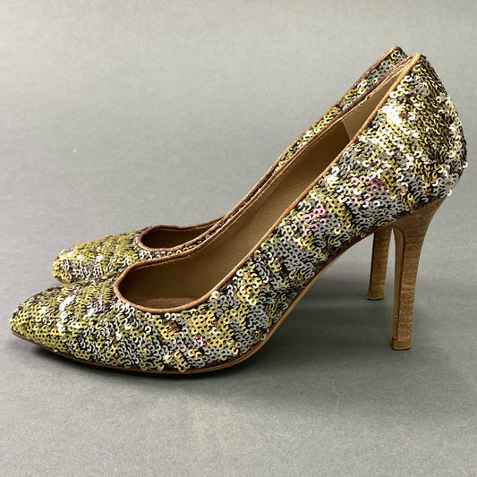 3k29 DOLCE&GABBANA ドルチェアンドガッパーナ イタリア製 スパンコール ヒールパンプス ハイヒール ポインテッドトゥ 37 ゴールド シルバー レディース