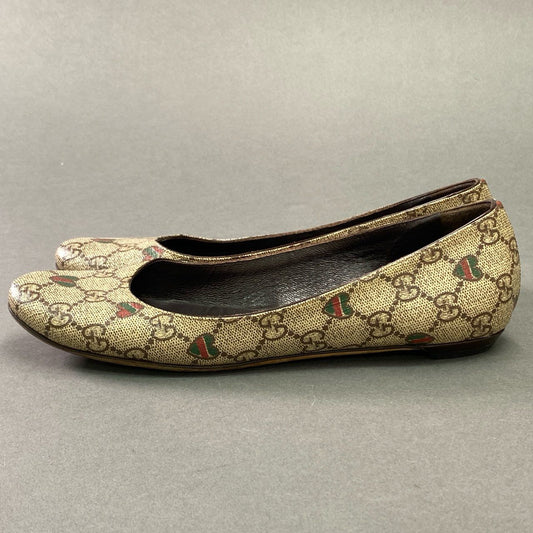3k29 GUCCI グッチ イタリア製 フラットパンプス GGロゴ 総柄 ハート柄 215656 37 ベージュ系 レディース