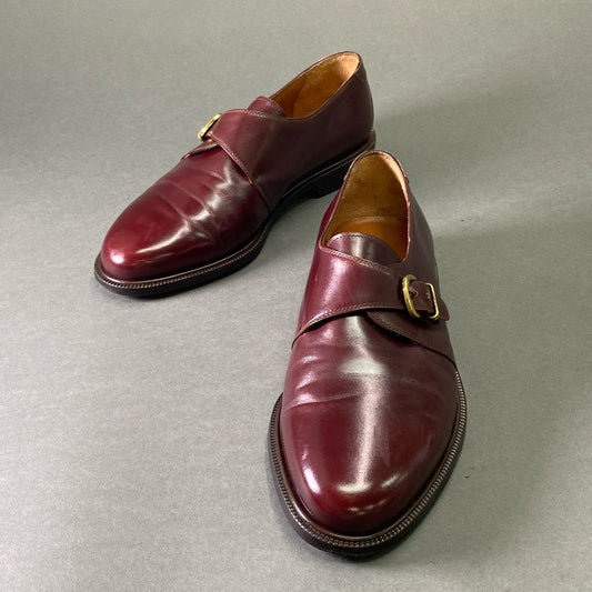 2e7 Salvatore Ferragamo サルヴァトーレ フェラガモ シングルモンク ビジネスシューズ 6 1/2 ボルドー 赤茶 レザー フォーマル ゴールド金具