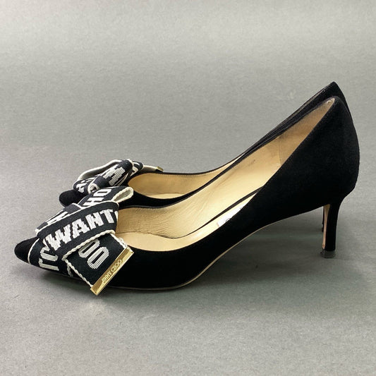 2d21 JIMMY CHOO ジミーチュウ Tegan ティーガン リボンパンプス 39 ブラック スエード シューズ イタリア製