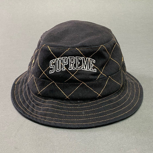 9d5 Supreme シュプリーム Diamond Stitch Crusher Hat バケットハット クラッシャーハット ブランドロゴ M/L ブラック コットン100%