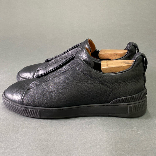 2e2 Ermenegildo Zegna エルメネジルド ゼニア ディアスキン トリプルステッチ スニーカー 7 1/2 ブラック レザー シューズ 革靴 スリッポン